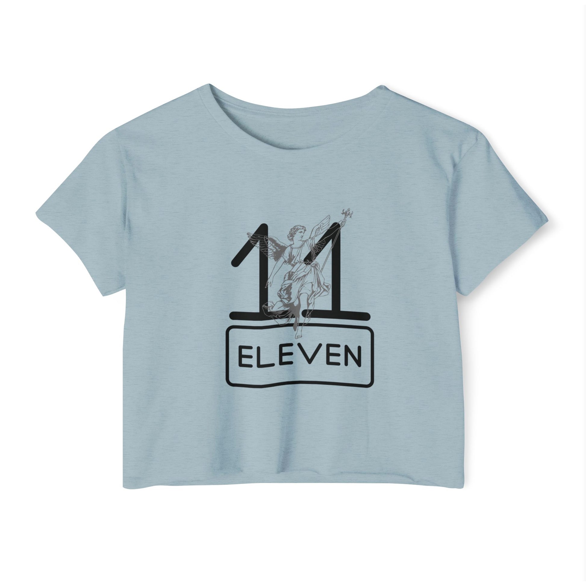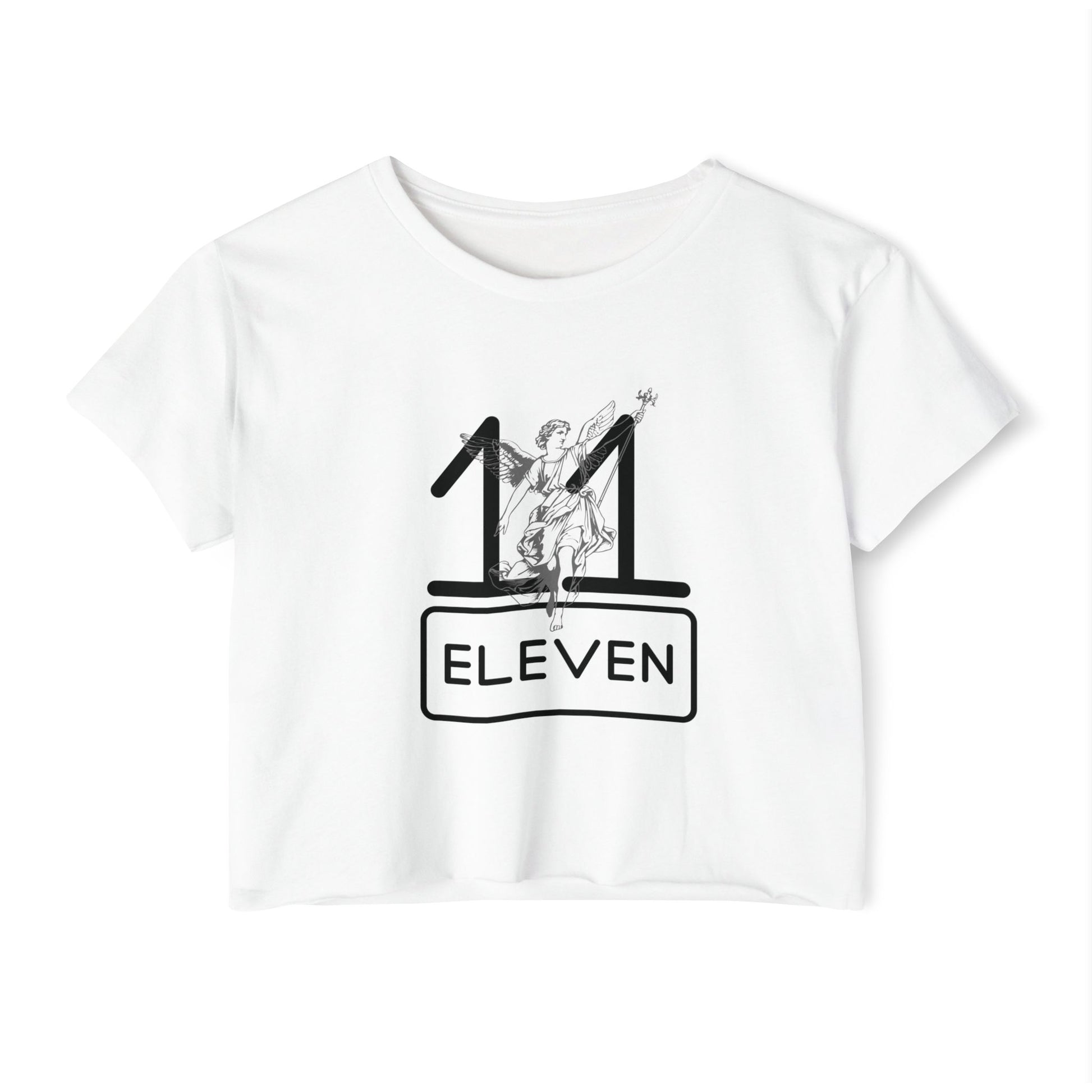 A lucky bold streetwear style Crop Top with Angel Number 11 eleven. Perfect for festival and concert goers looking for a unique and edgy look. Ideal for music festivals, Halloween parties, and alternative fashion enthusiasts.